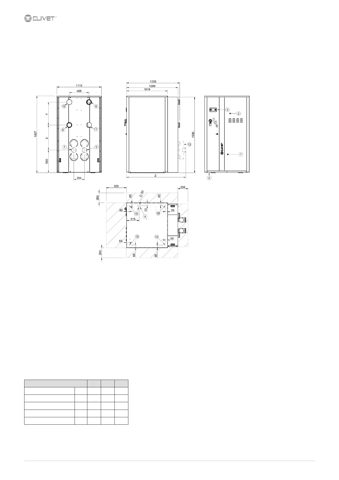 The weights refer to the unit equipped with the following options: cold side hydronic unit VARYFLOW+ (VARYC), hot side hydronic unit VARYFLOW+ (VARYH), oversize enclosure (MOBMAG)