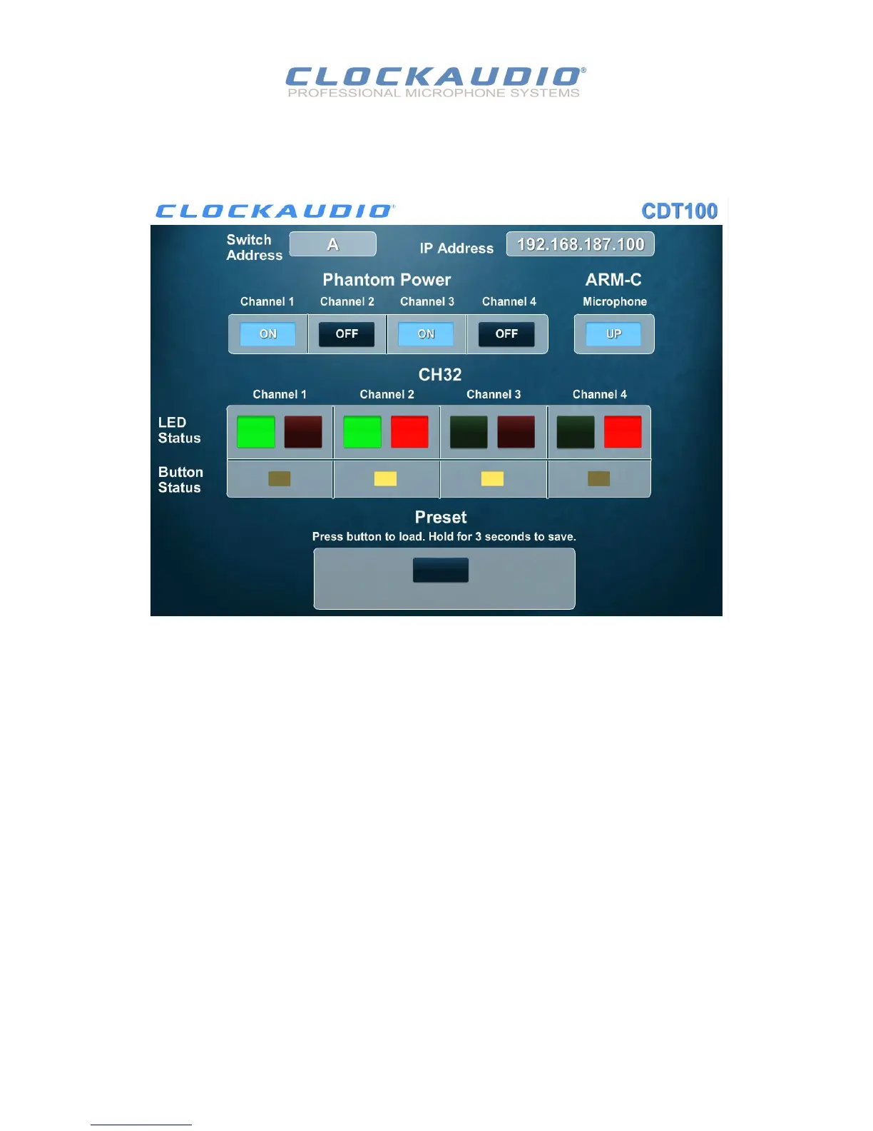 (www.clockaudio.com) CDT100 product Technical Downloads.