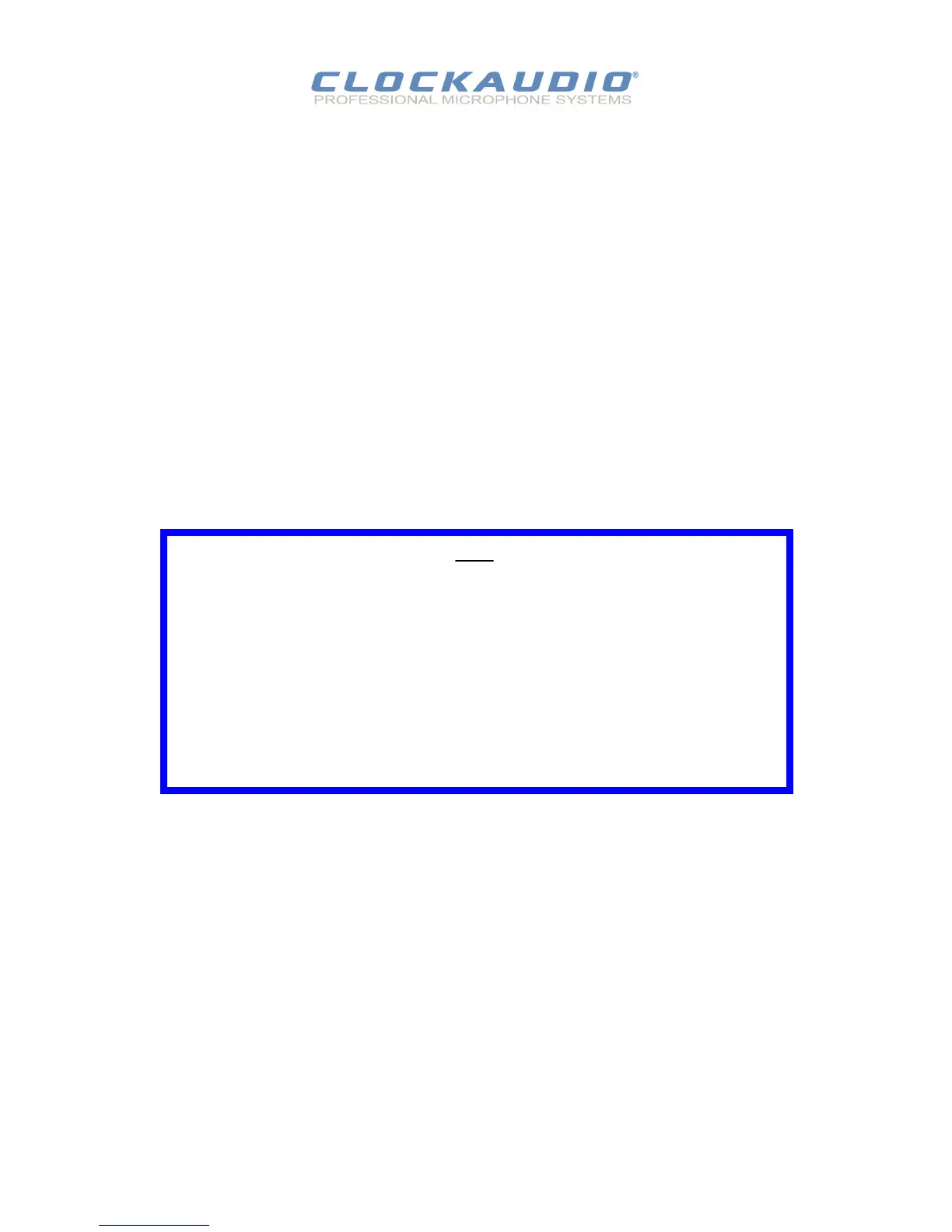 If Clockaudio cannot correct the defect in the equipment, it will be replaced at no charge with a new item. Clockaudio will pay