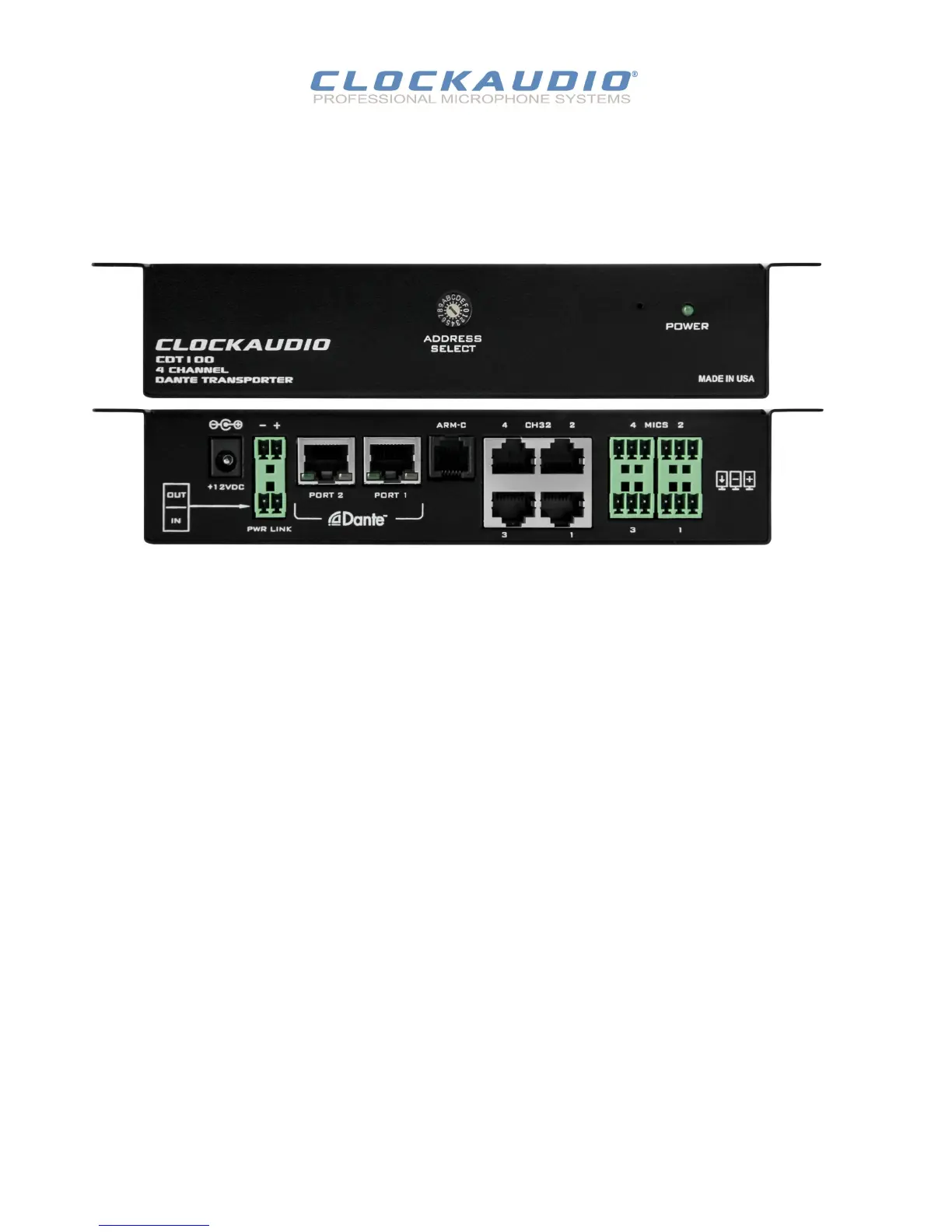 The CDT 100 has two network connecons to allow Dante Daisy Chaining (DDC).