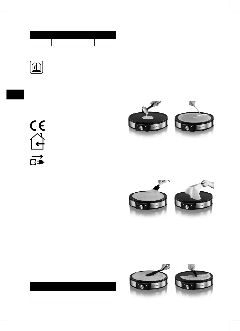 • Place the Crêpes Maker on a dry, level, non-slip sur-