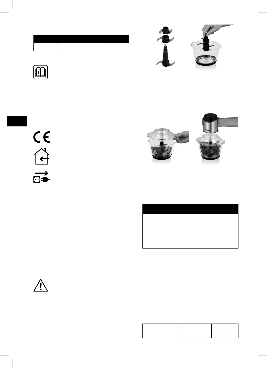 • Reinig de kom en de messen met een vochtige doek.