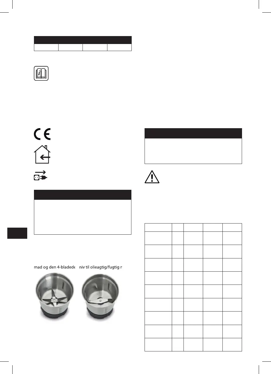 • Den 2-bladede kniv er velegnet til formaling af tør