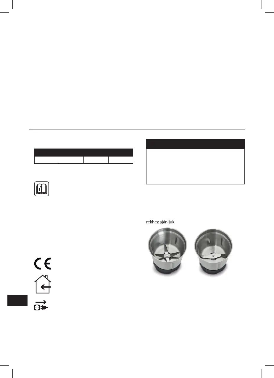 • Figyelem! Soha ne működtesse a darálót üresen, mivel ez a motor túlmelegedését okozhatja.