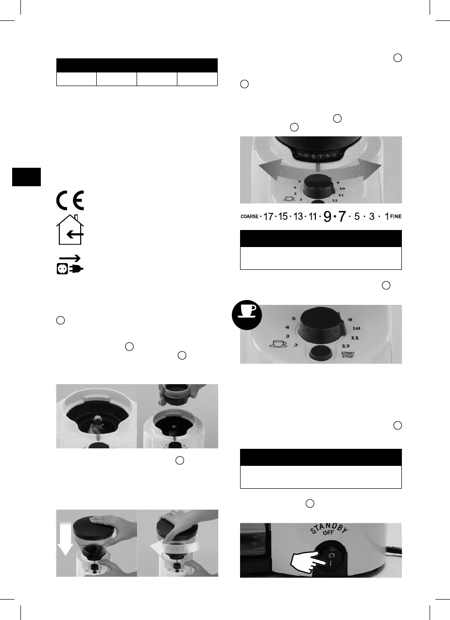 • Place the coffee grinder on a dry, slip-resistant and