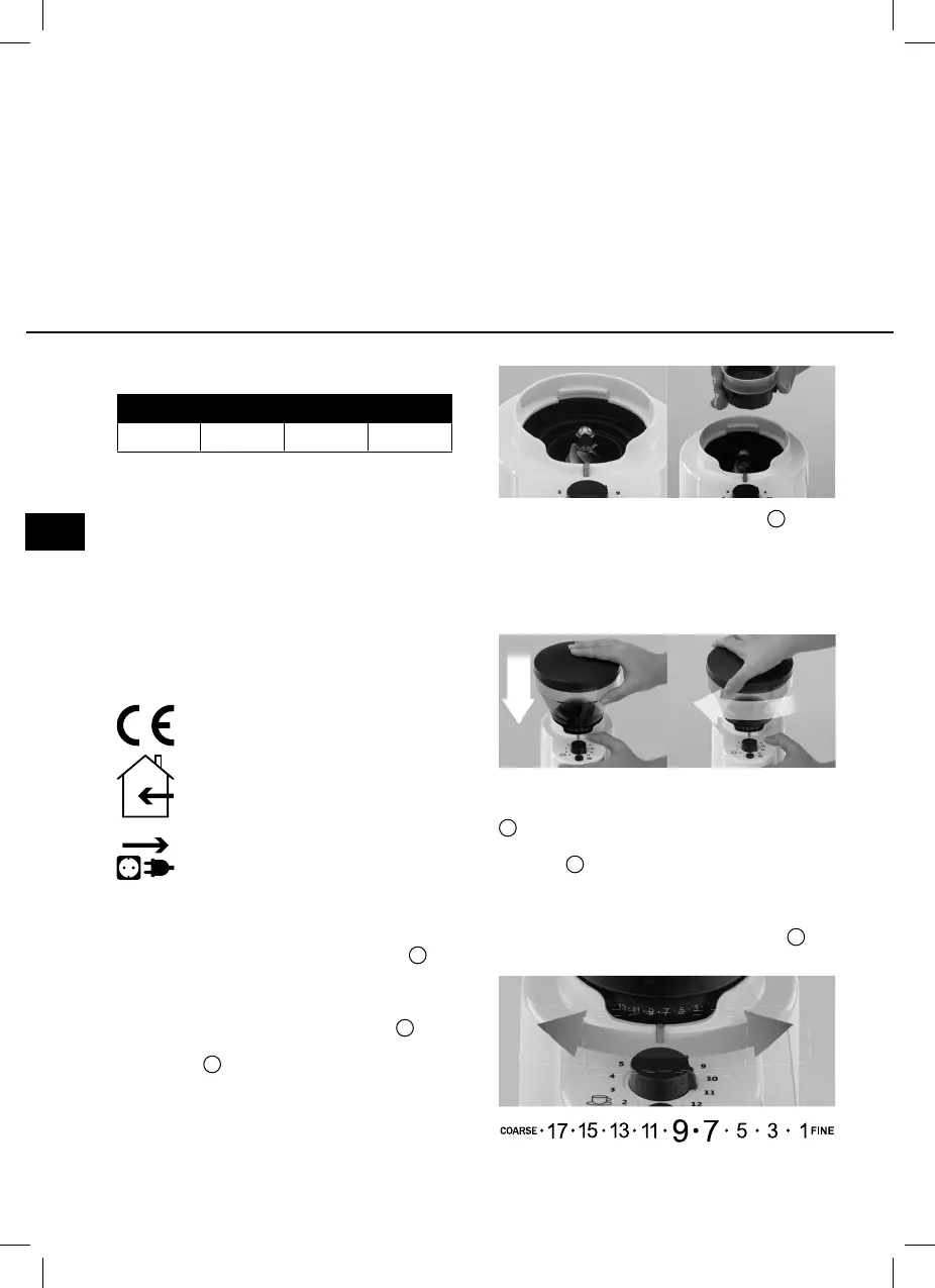 • Posizionare il macinacaffè su una superficie asciutta,