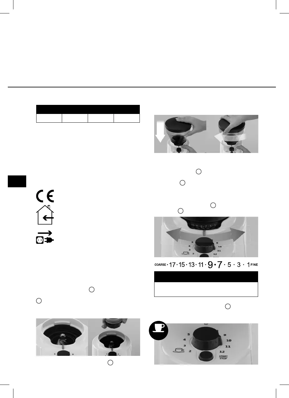 • Bitte beachten Sie, dass Ihre Kaffeemühle aus Si-