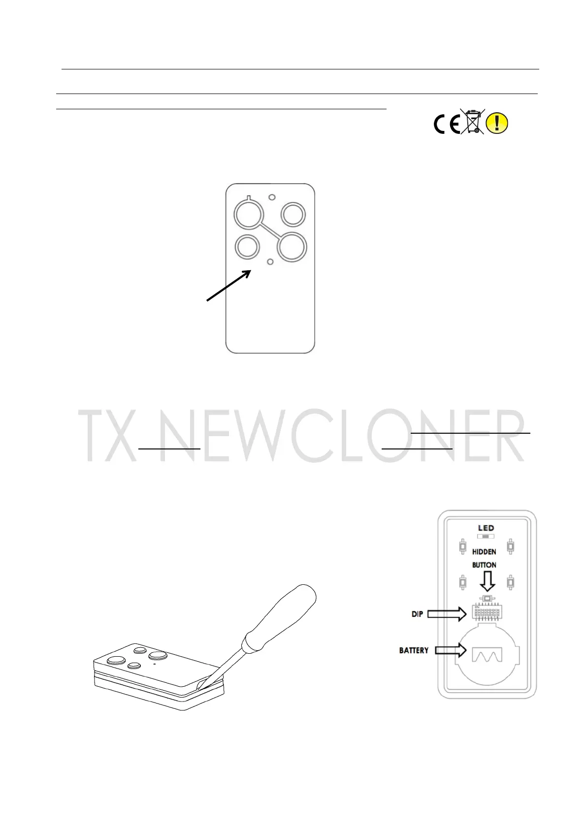 1. Locate the selector DIP inside the remote. Lever to separate the case