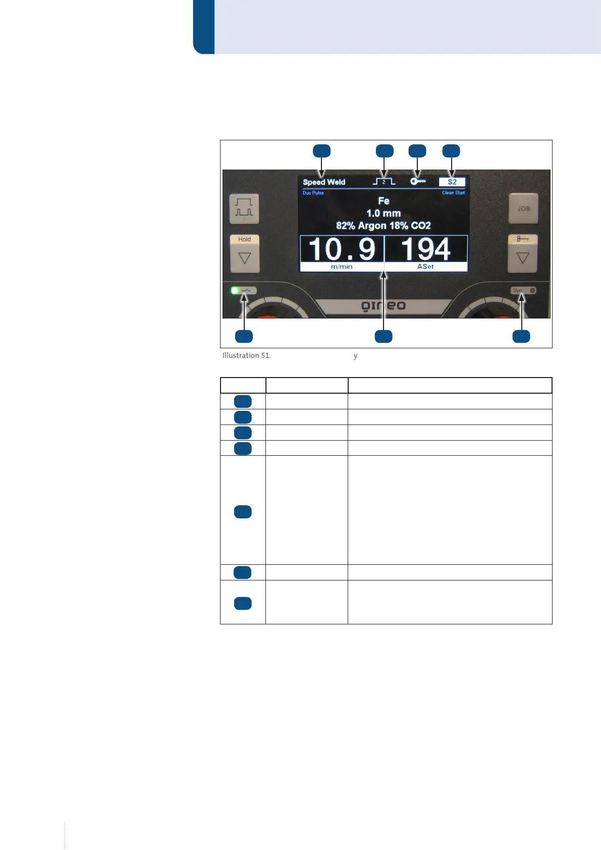 Main display Display of the welding measurement values