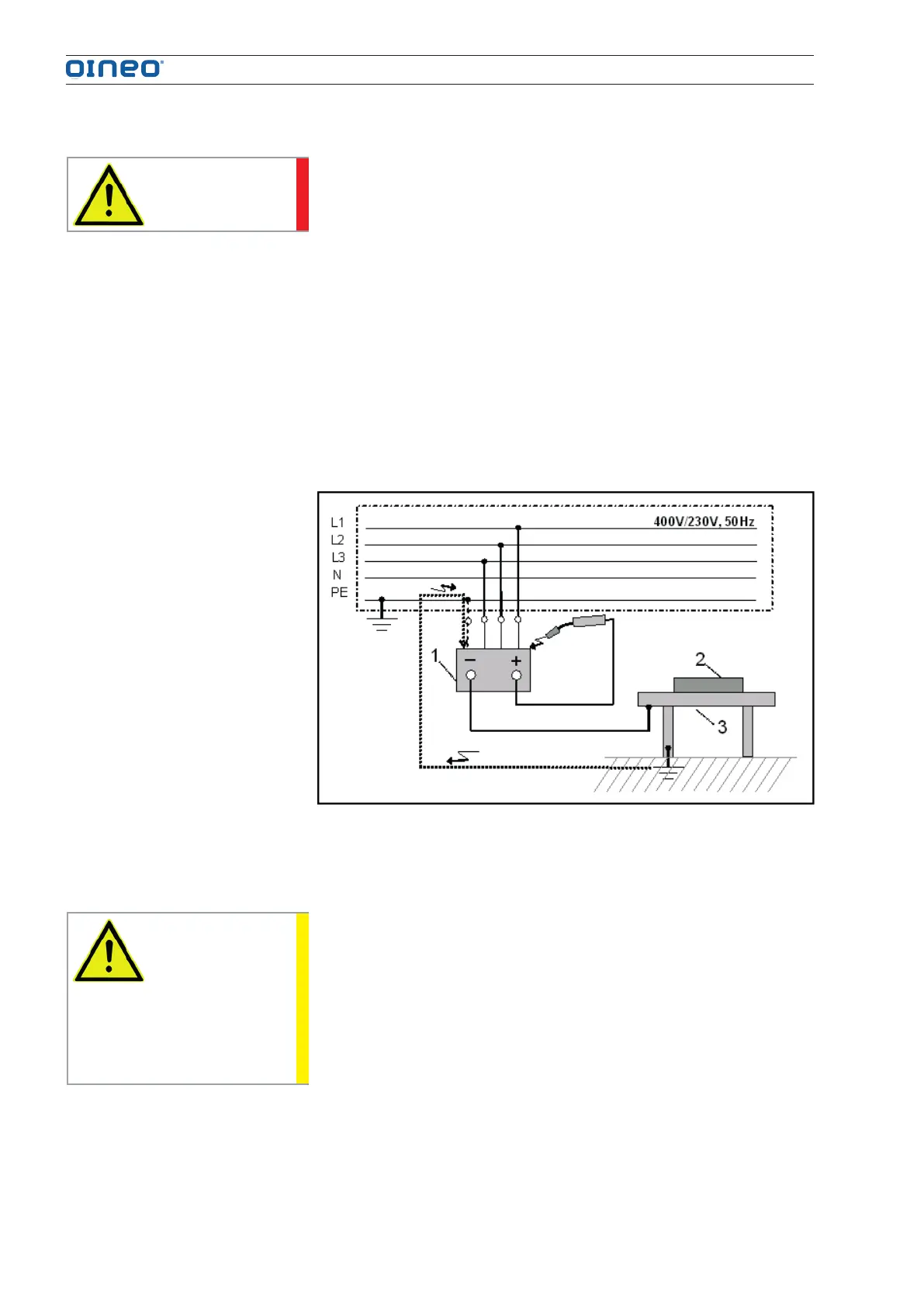 1 = Welding power source, 2 = Workpiece, 3 = Welding table