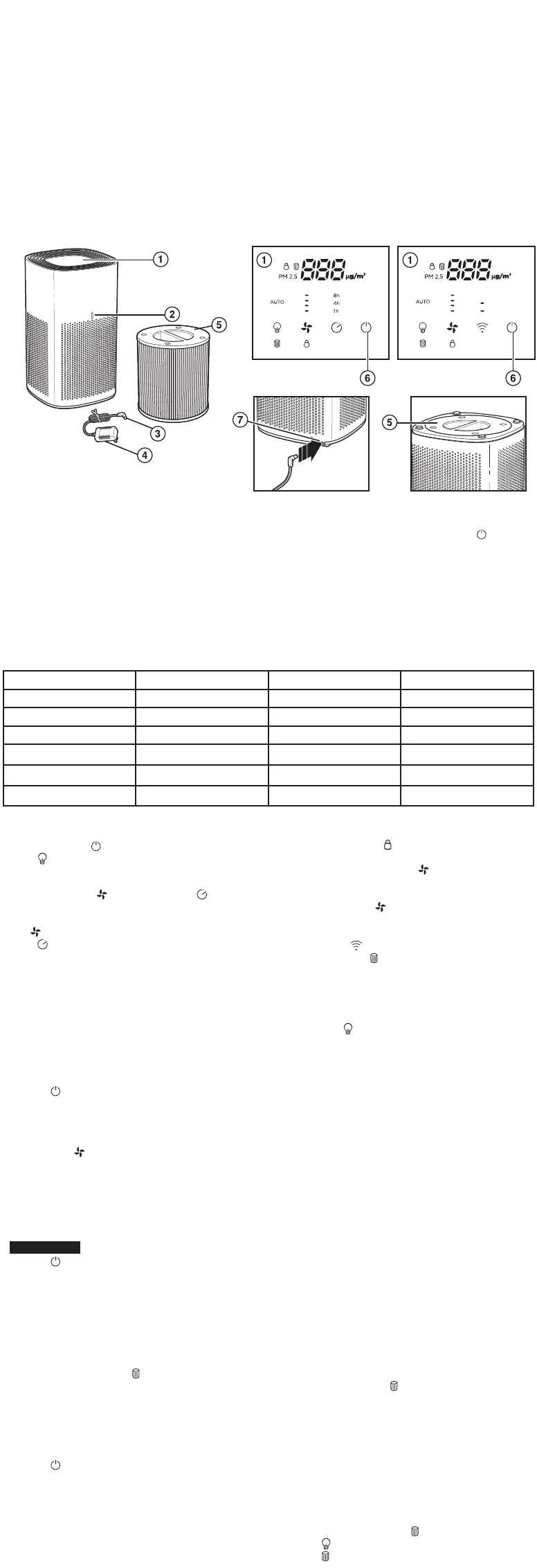 voyant de la qualité de l’air : Allumé, faible, éteint.