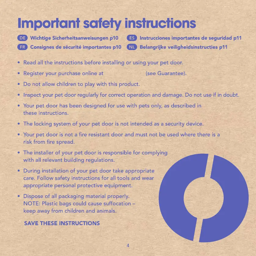 Closer pets Large Cat Flap - Important safety instructions