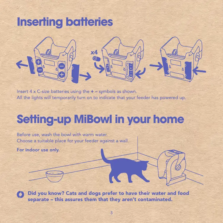Closer pets MiBowl - Inserting Batteries; Setting Up Your MiBowl