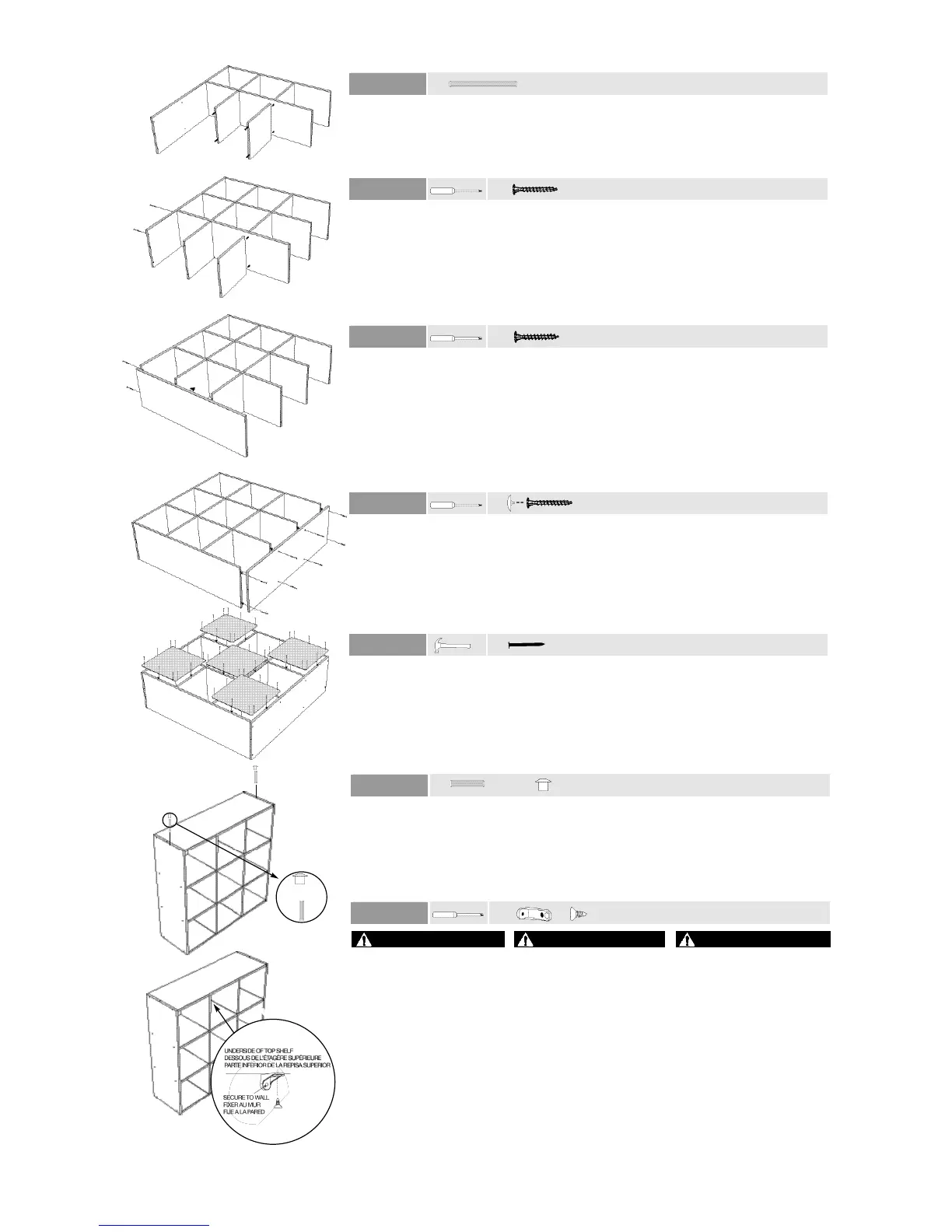 stacking units; secure each unit to wall using