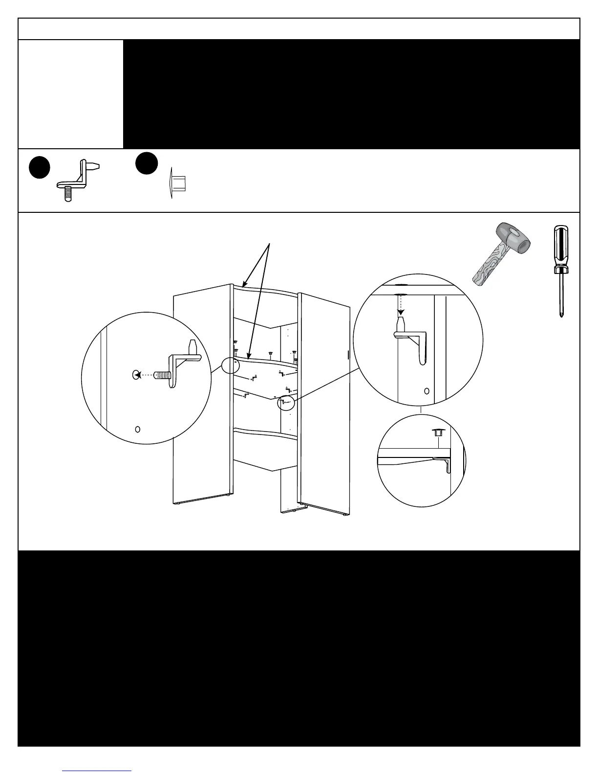 • Align holes in adjustable shelf with upper