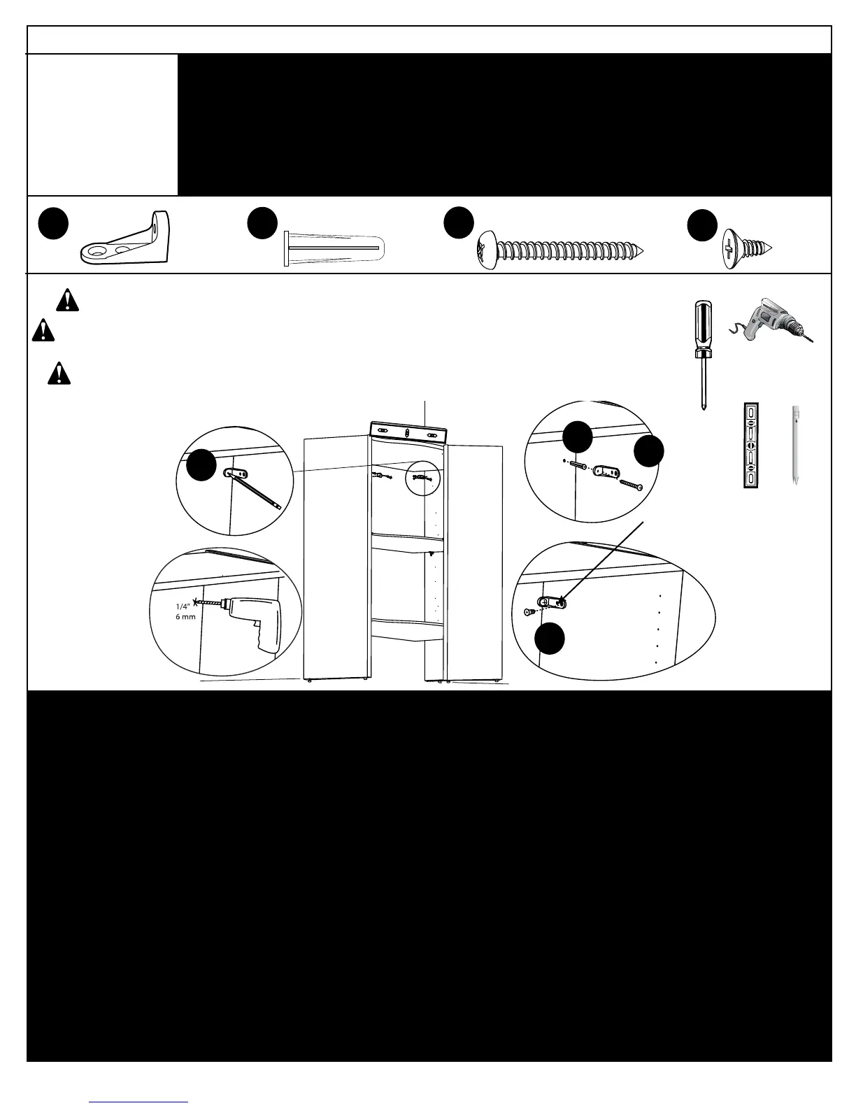 • Drill 1/16” pilot hole and secure L-bracket
