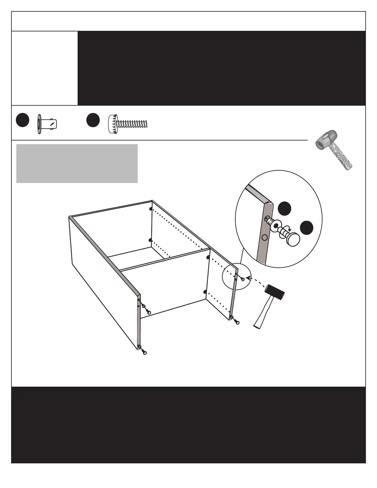 Insert 2 bottom nuts and 2 feet into bottom of each side panel.