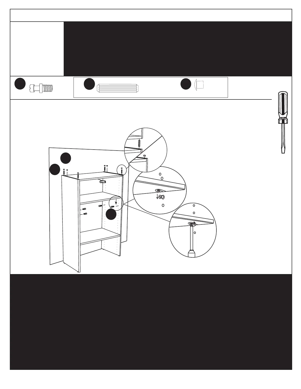 Install adjustable shelf, hole covers, and dowels or hole plugs.