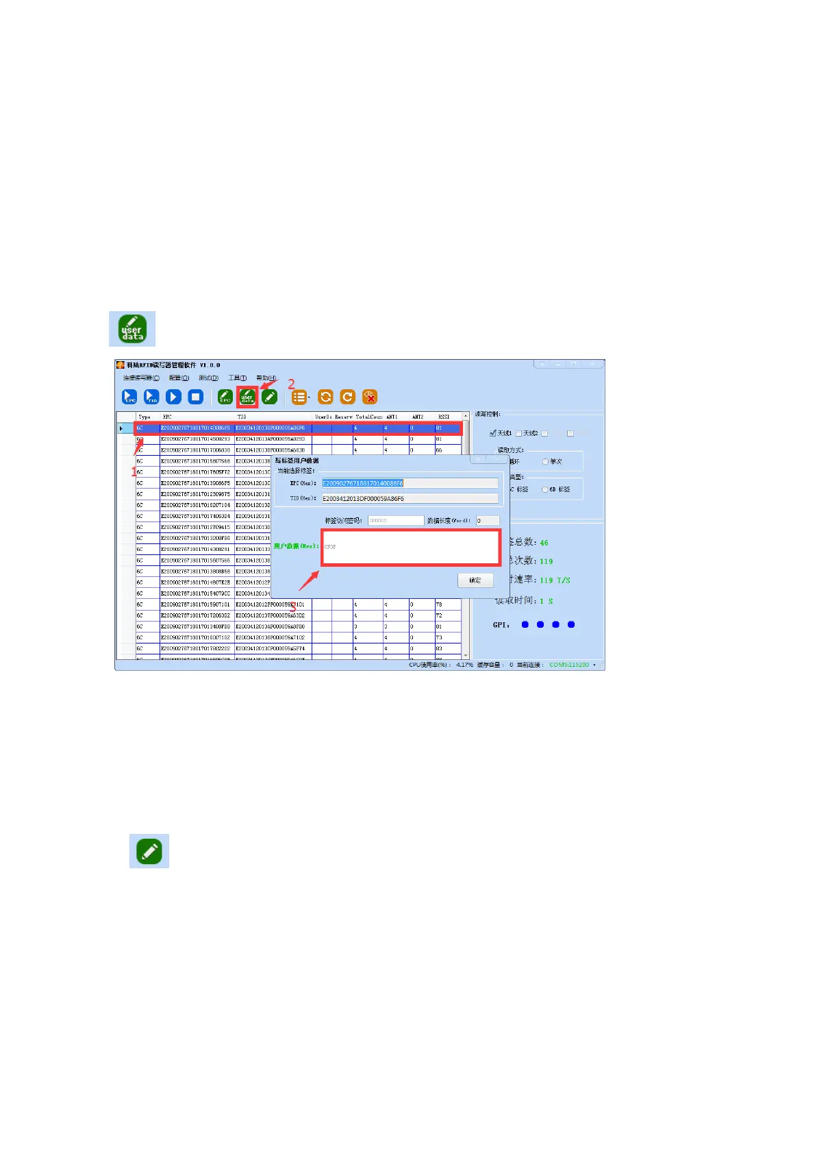 Choose one tag data ﴾which includes TID information﴿, input EPC data ﴾Hexadecimal string﴿, click