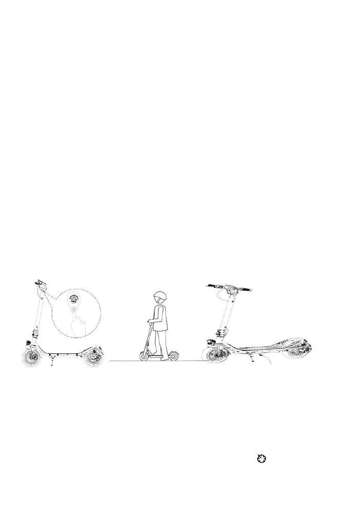 To start the scooter, first slide the scooter with your foot 1-2 meters, then press the