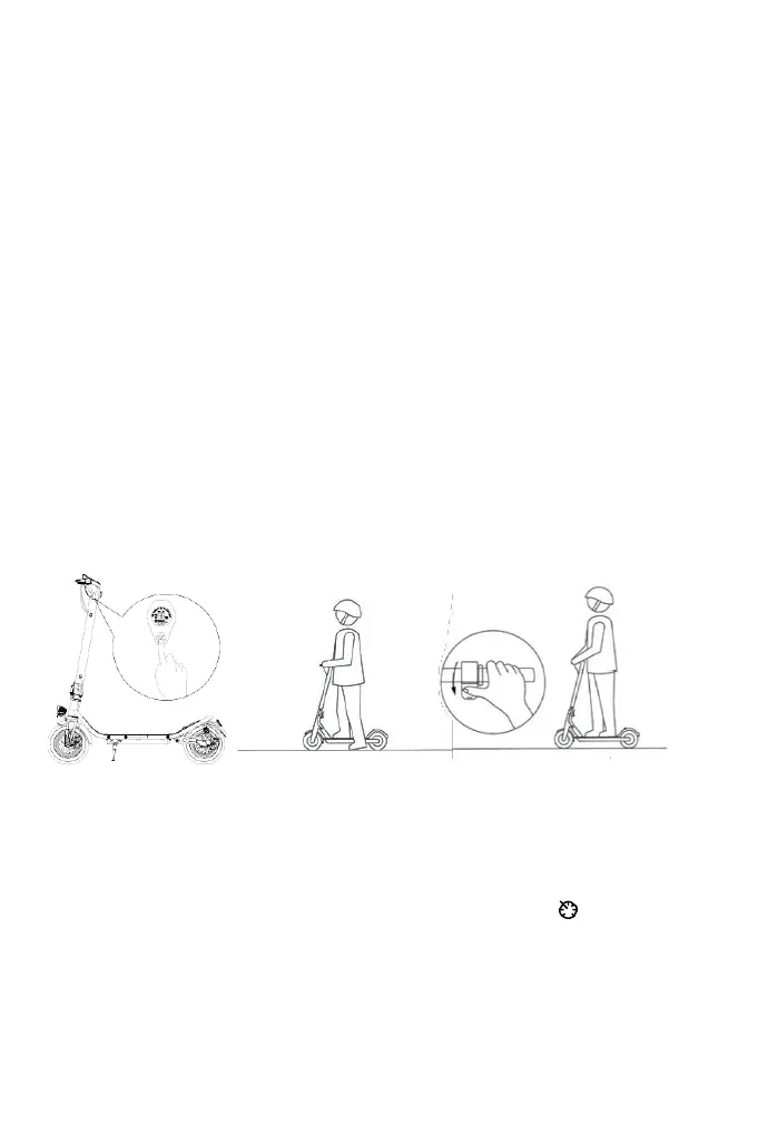 Paina käynnistyspainiketta kaksi sekuntia. Sähköpotkulauta kytkeytyy päälle/pois