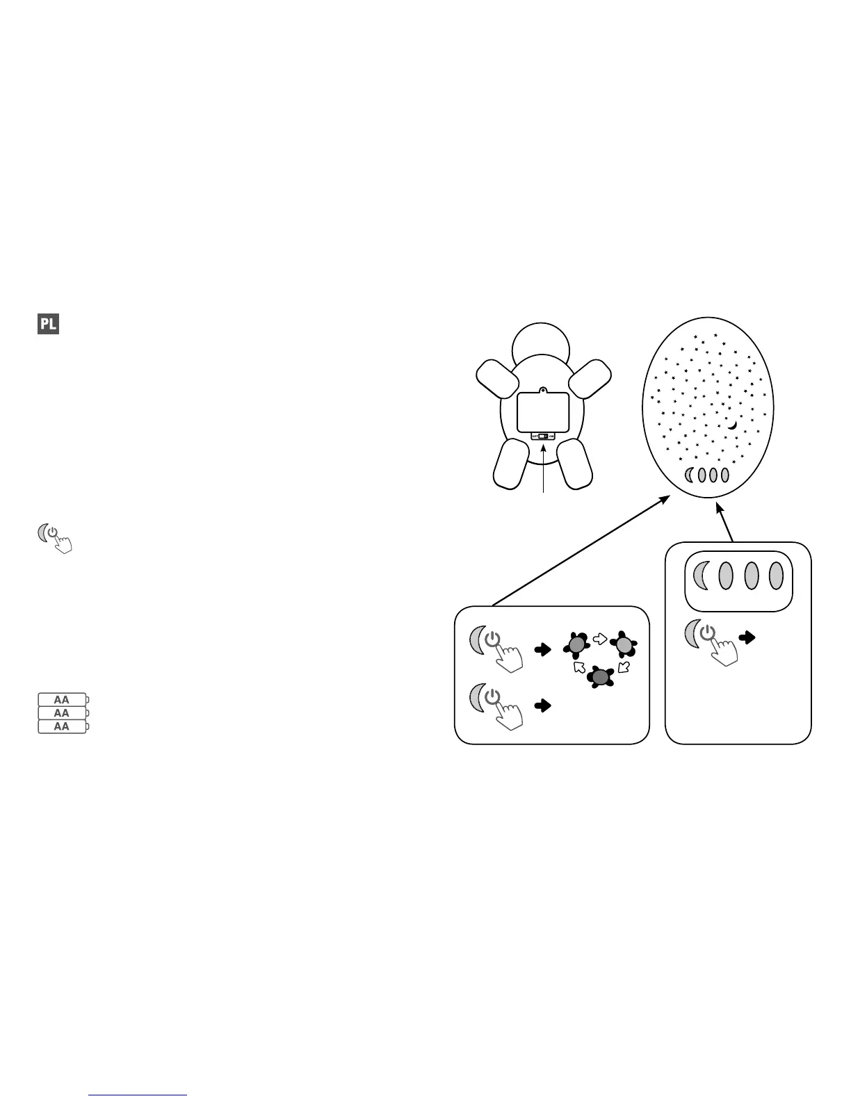 na baterie w dolnej części produktu Twilight Buddies; należy