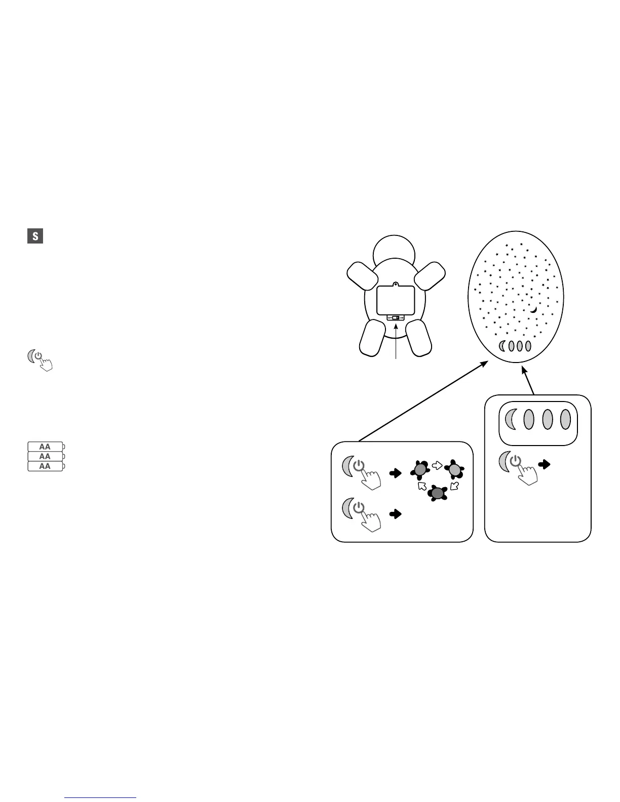 undersidan av Twilight Buddies. Dra strömbrytaren till On