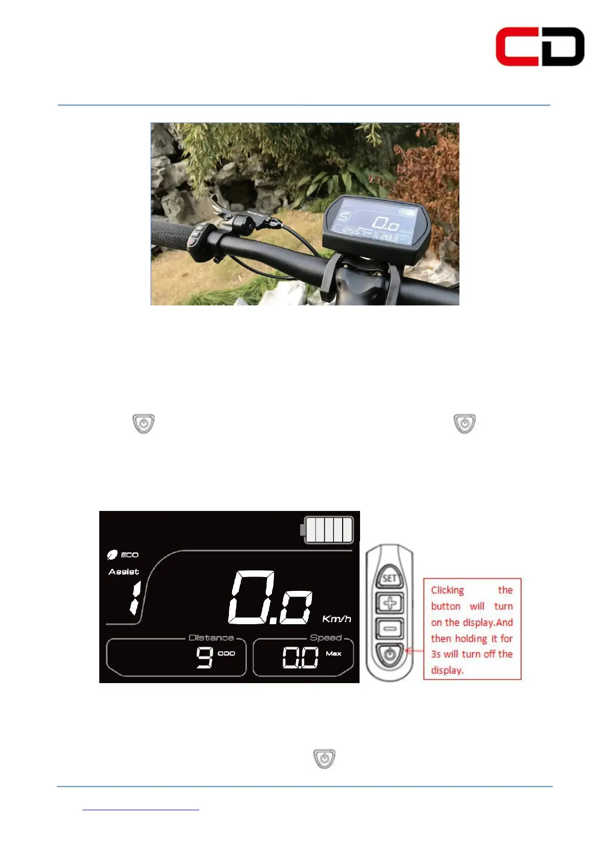 When the display is power on, click button to turn on the lights. Then