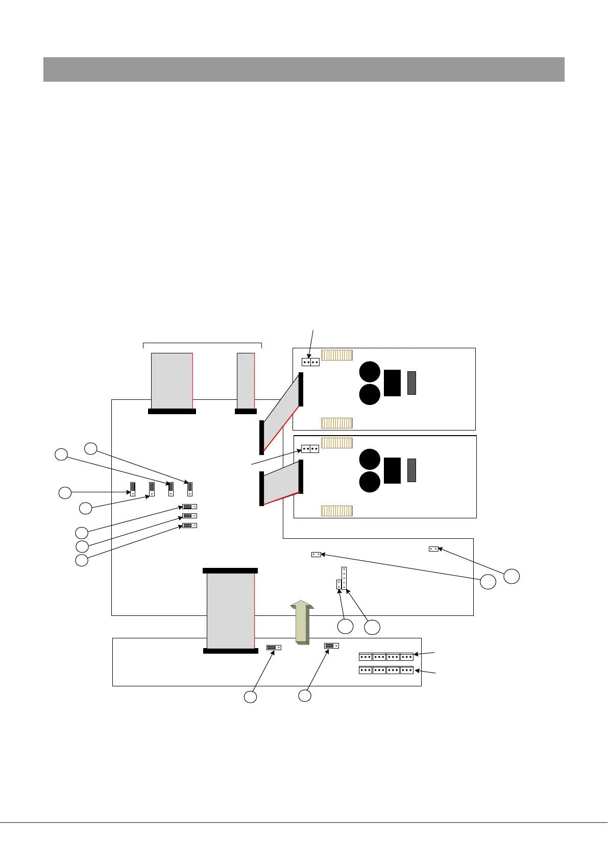 shows the locations of the internal jumpers (not to scale) on the internal PCBs, and the table below lists each jumper and its