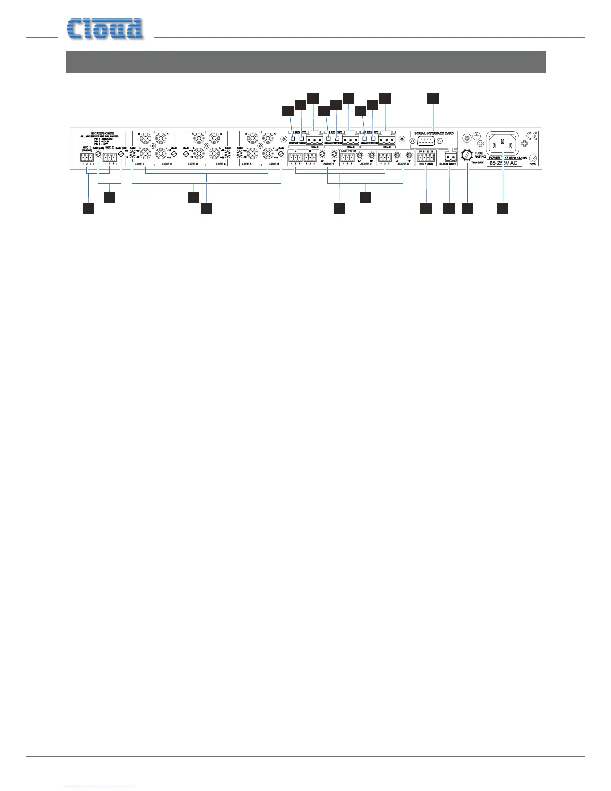 5. OUTPUTS 1 to 3 – three balanced Zone outputs: Zone 1 is stereo, Zones 2 & 3 are mono. See “Zone Outputs” on