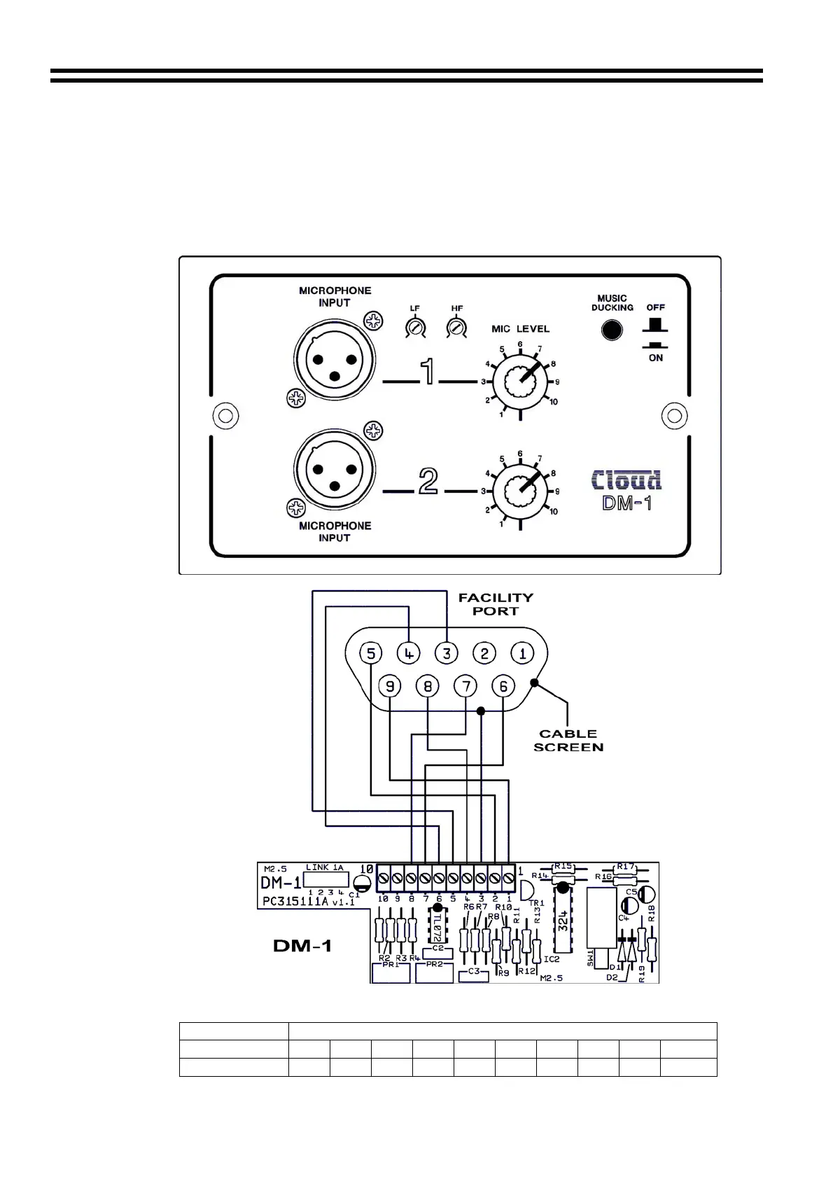format (see section 24.3). Use 8 core screened cable to link the DM-1 to the facility input and