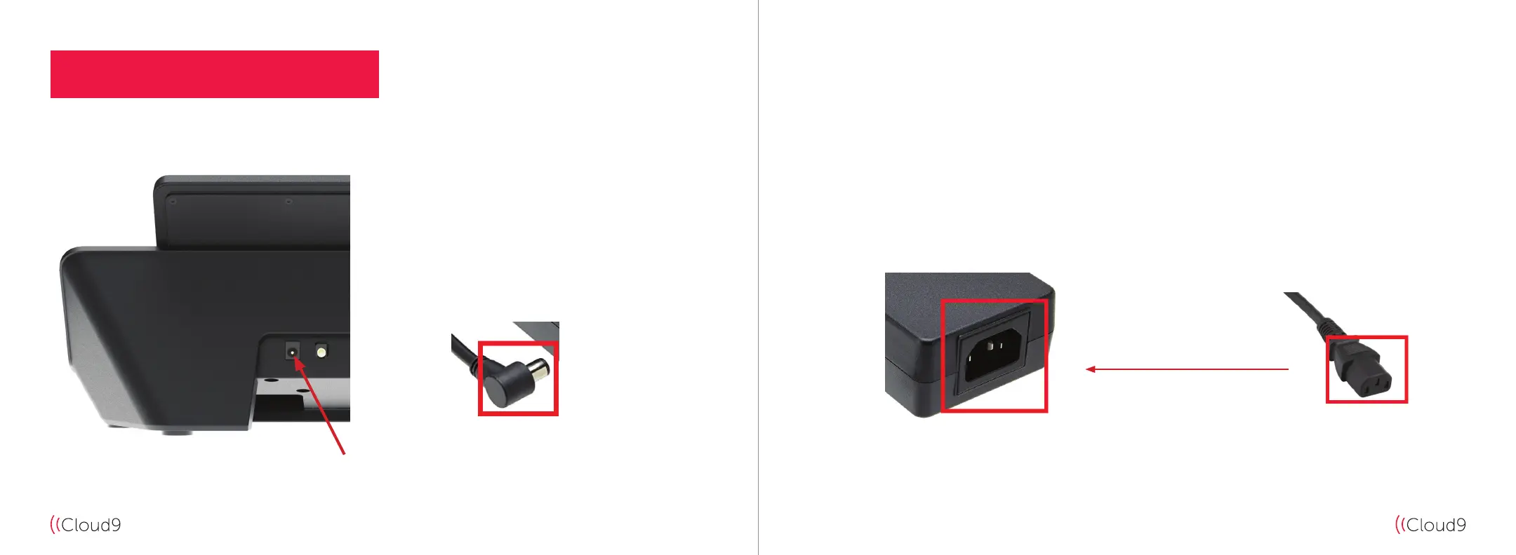 2. Install the Power Cord (see Diagram C) into the AC Power Supply (see Diagram B) for your Cloud9 CloudHub