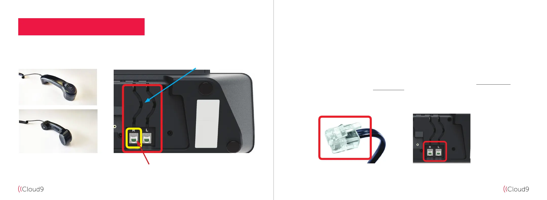 1. Install the Cloud9 Handset(s) RJ11 Connector (see Diagram B) into the RJ11 socket located on the Cloud9