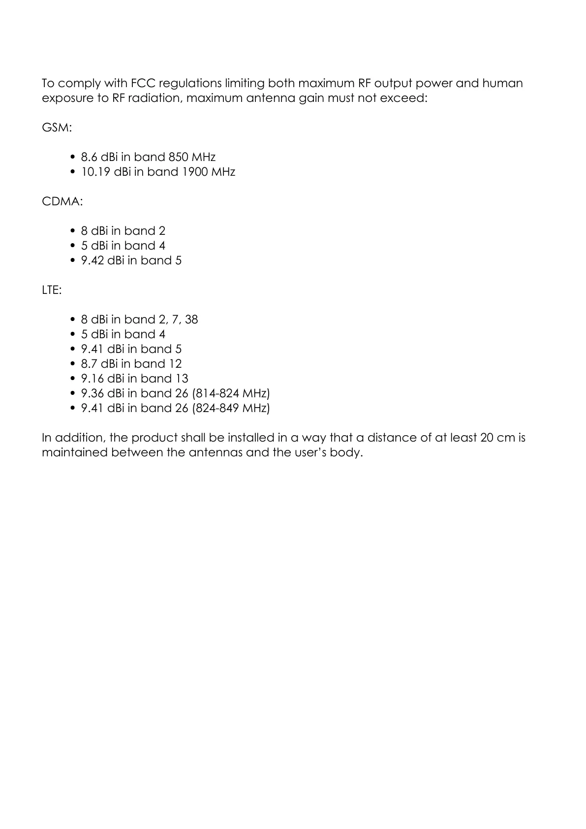 maintained between the antennas and the user’s body.