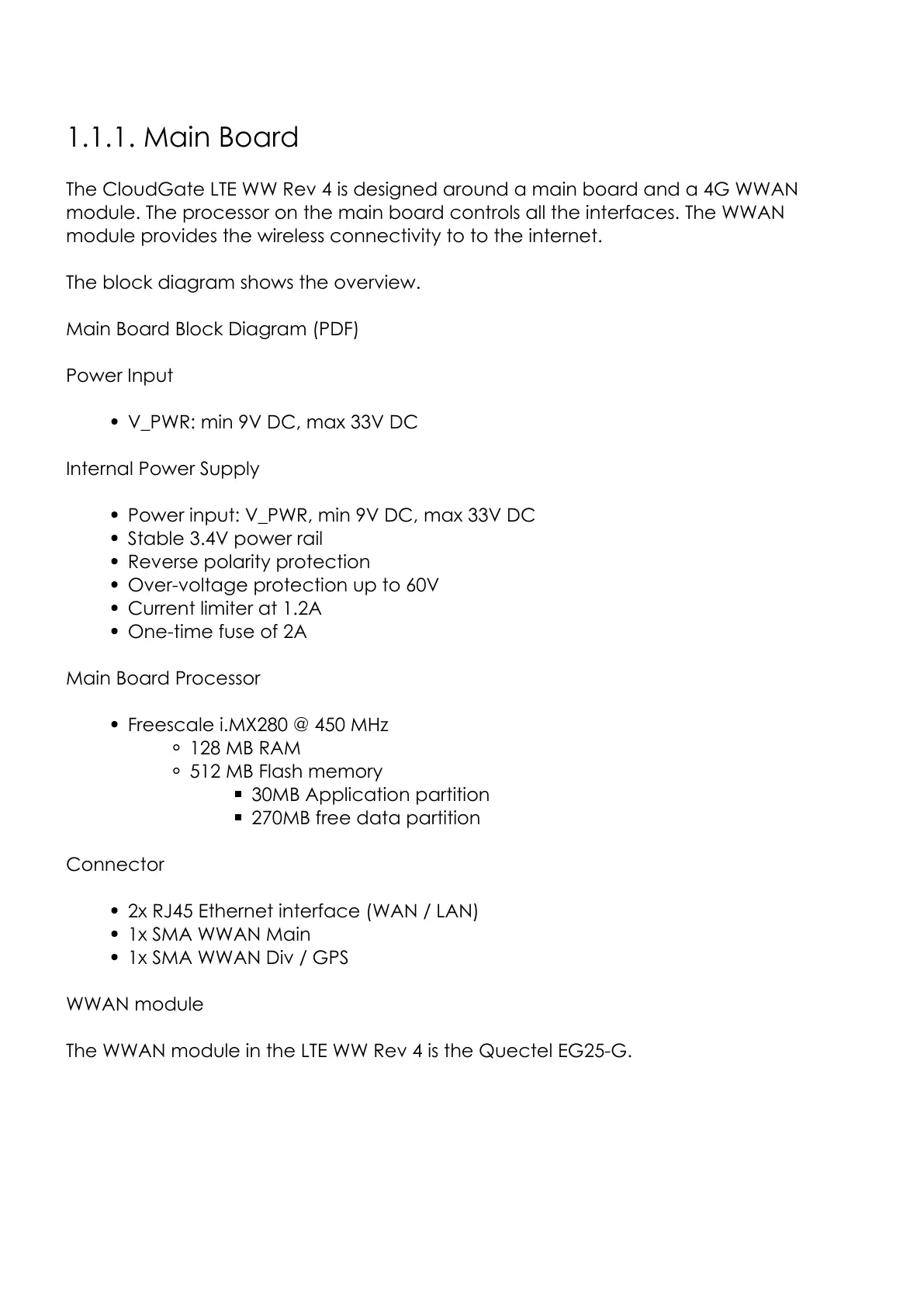 The CloudGate LTE WW Rev 4 is designed around a main board and a 4G WWAN