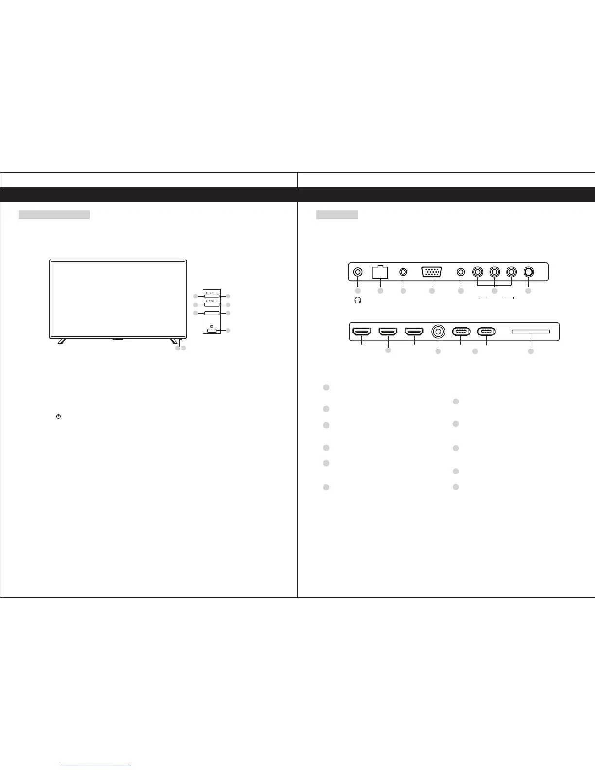 Press to turn TV on or turn to standby mode.