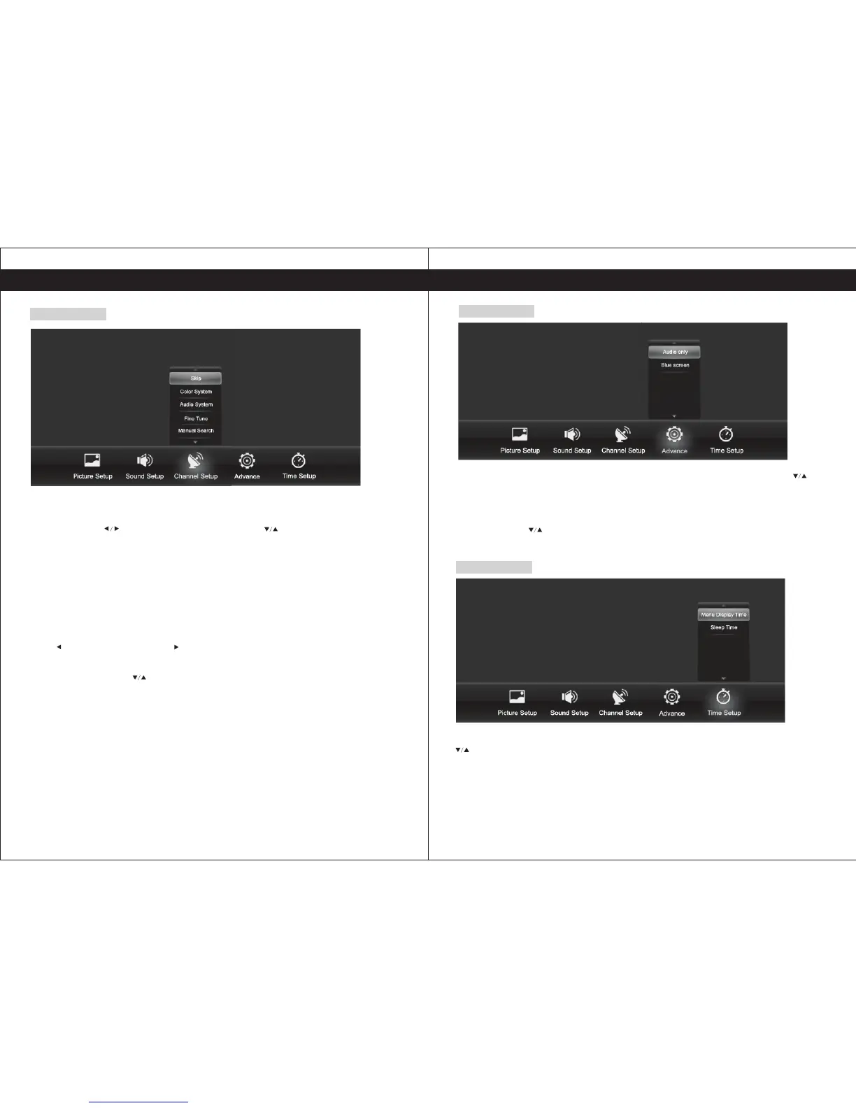 Audio System: To select television signal audio system, including the I, BG, M and DK four