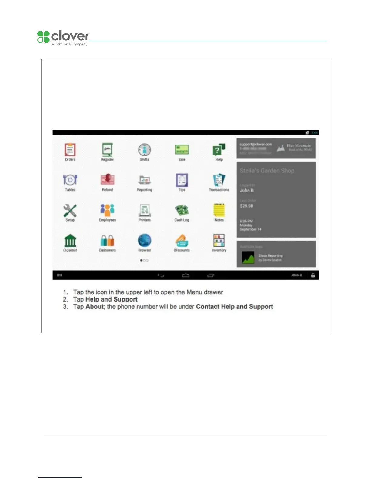 On Clover Mobile, Mini, Flex and Station, you will find your Clover Customer Support