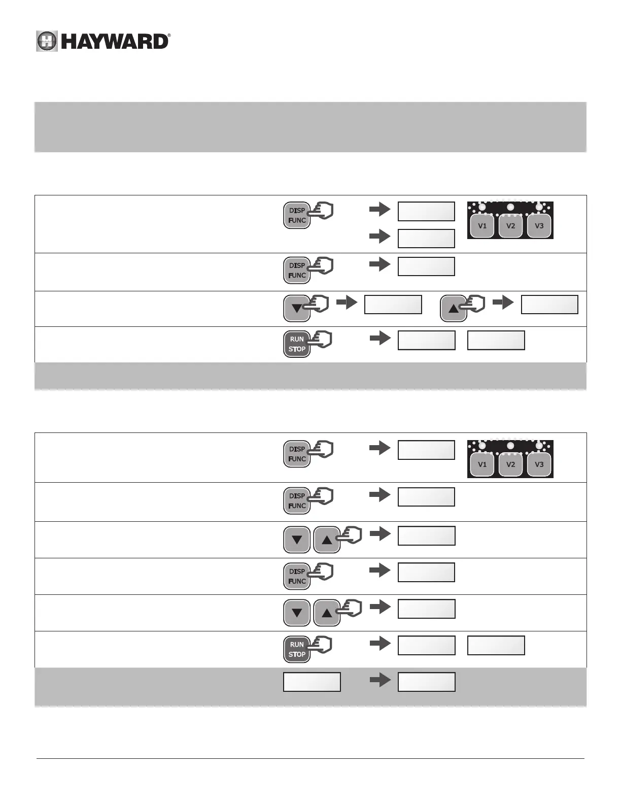Note: To adjust the settings the pump must be powered on and in Manual mode (section 2.4), switched off or running