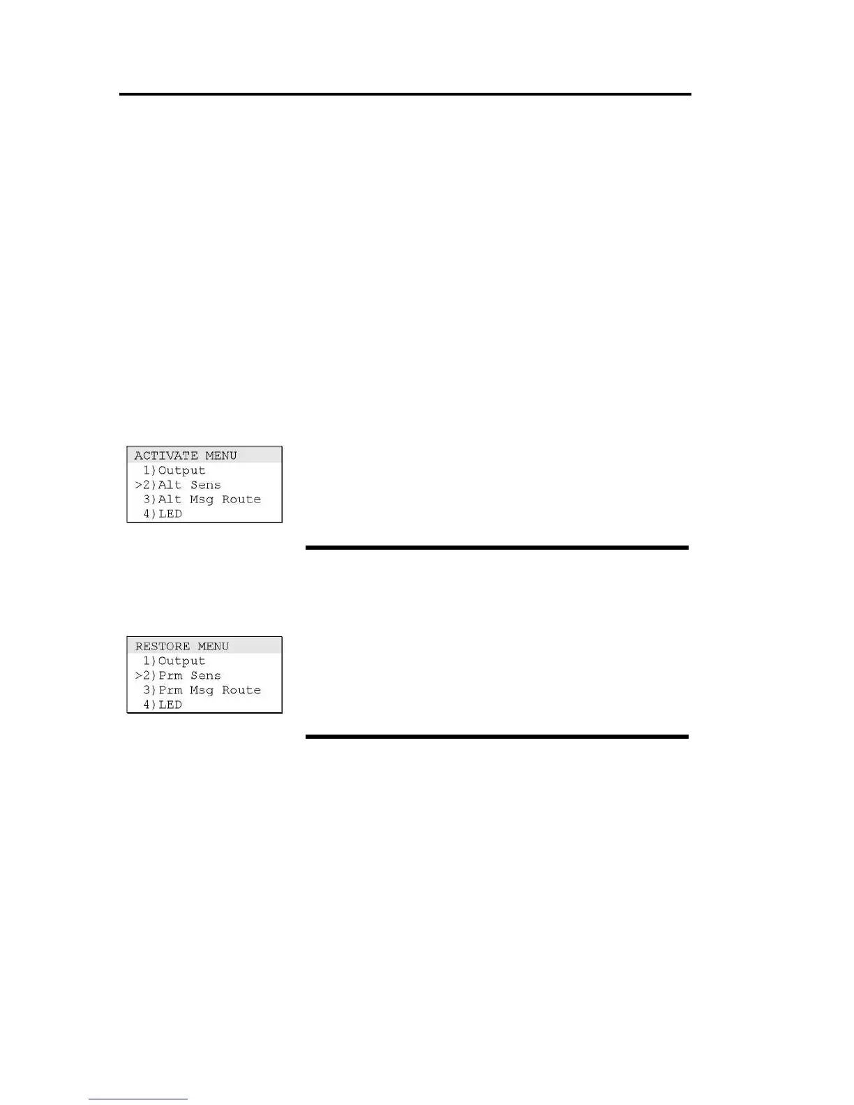 2. From the main menu, choose Activate, then Alt Sens.