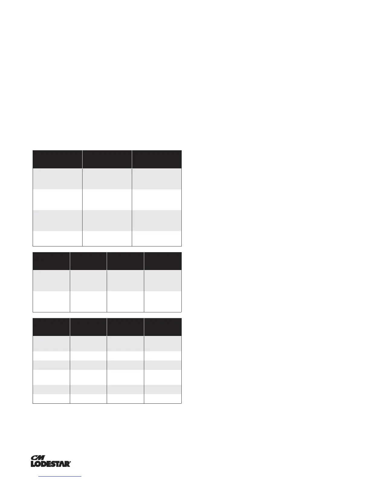 Table 8. Electrical Data for Hoist Components