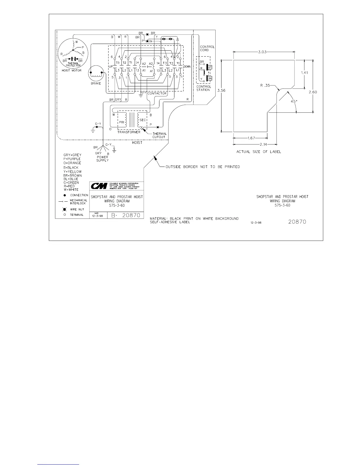 Figure 23 - 575-3-60 Hoists with Contactor (Black Control Station)