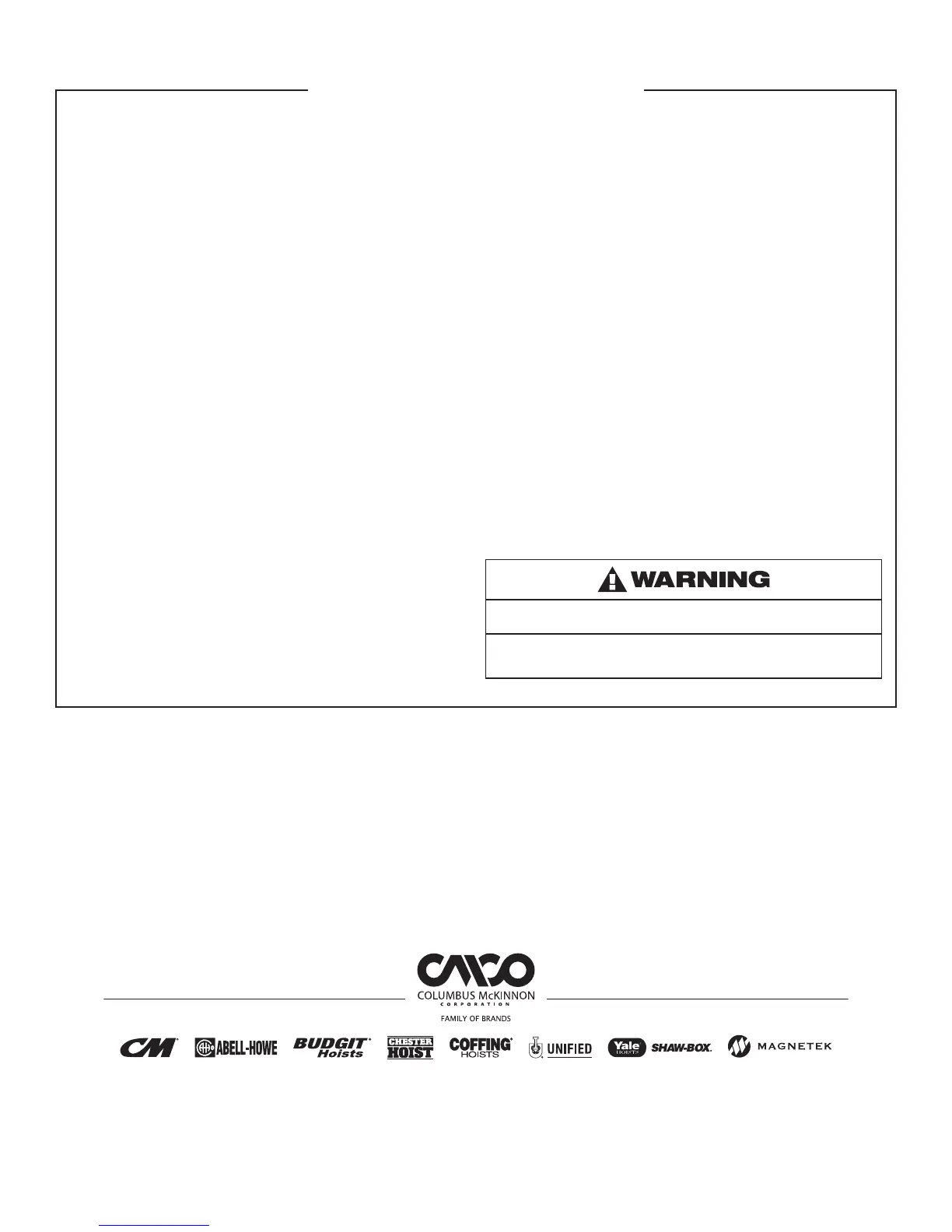 establish eligibility. Please register at www.cmworks.com/hoist-warranty-