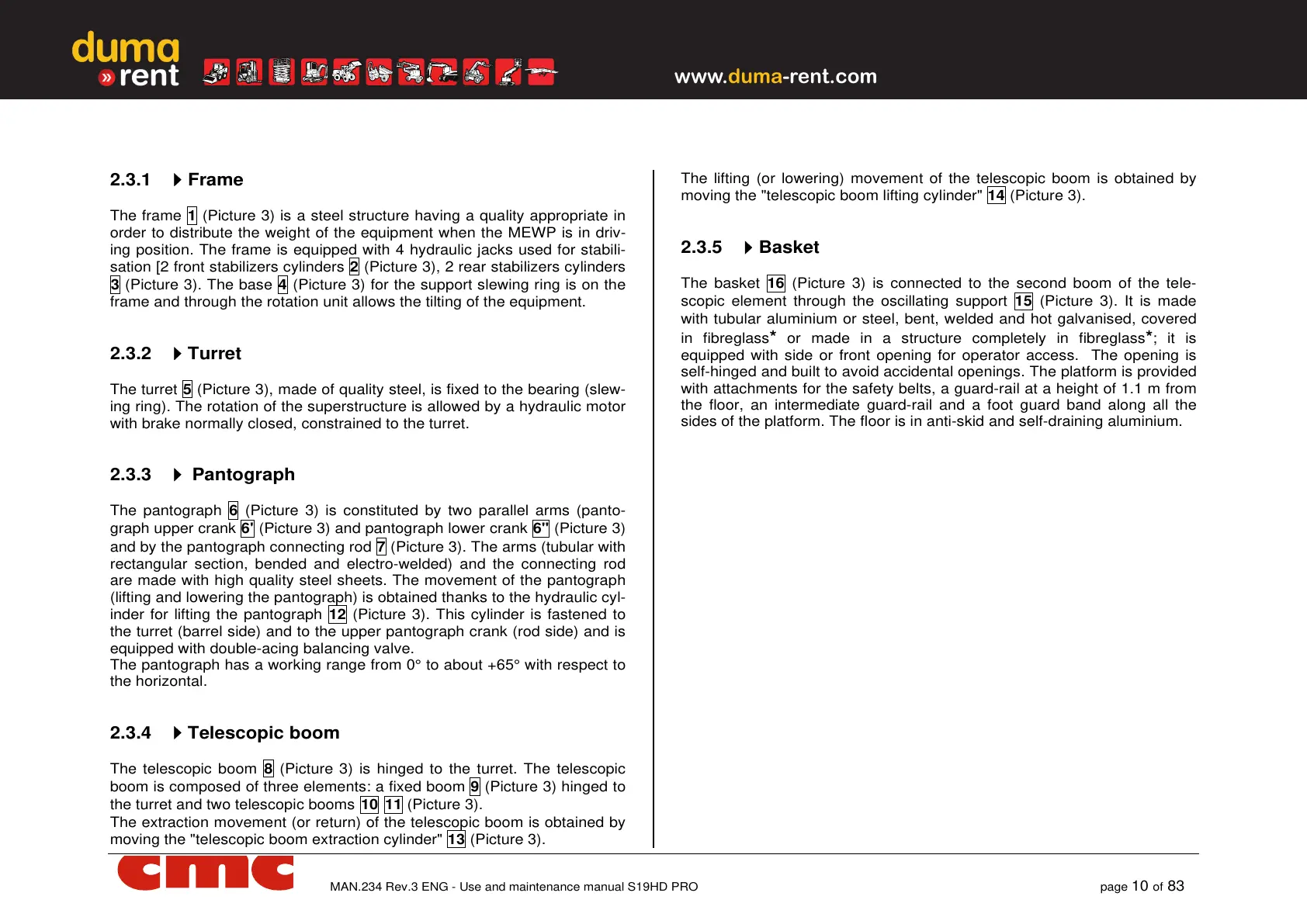 The telescopic boom 8 (Picture 3) is hinged to the turret. The telescopic