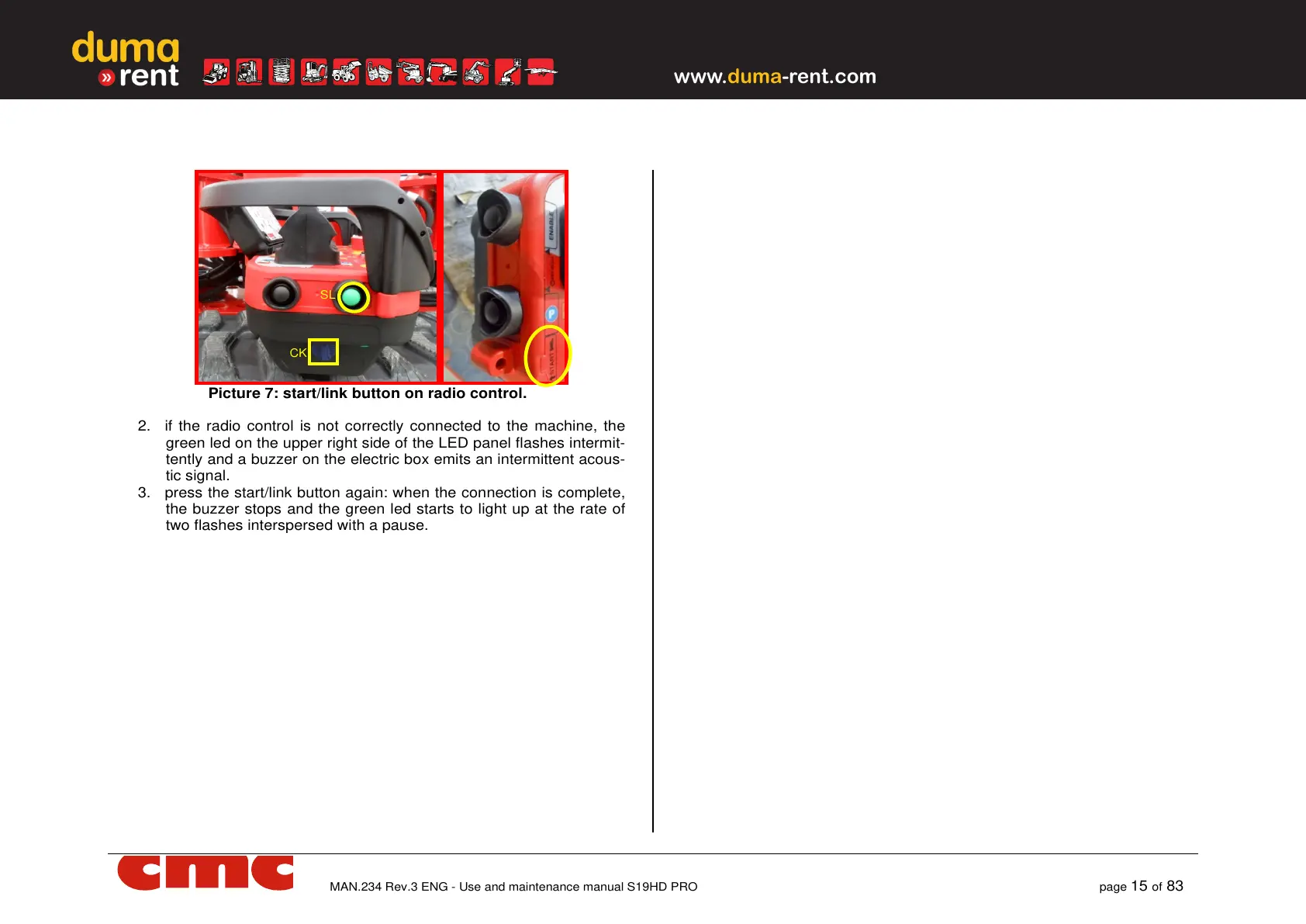 Picture 7: start/link button on radio control.