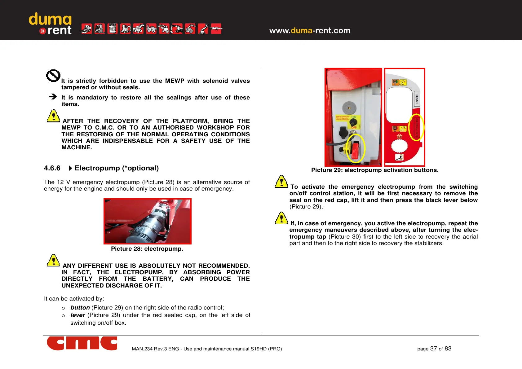 MAN.234 Rev.3 ENG - Use and maintenance manual S19HD (PRO) page