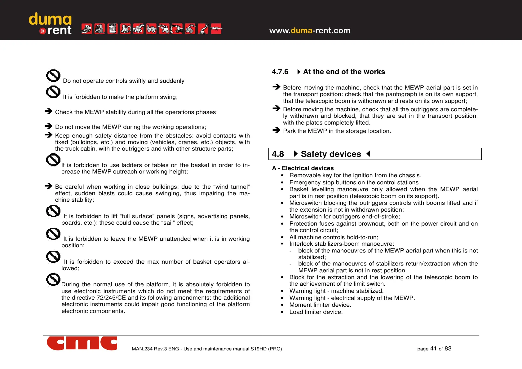 It is forbidden to leave the MEWP unattended when it is in working