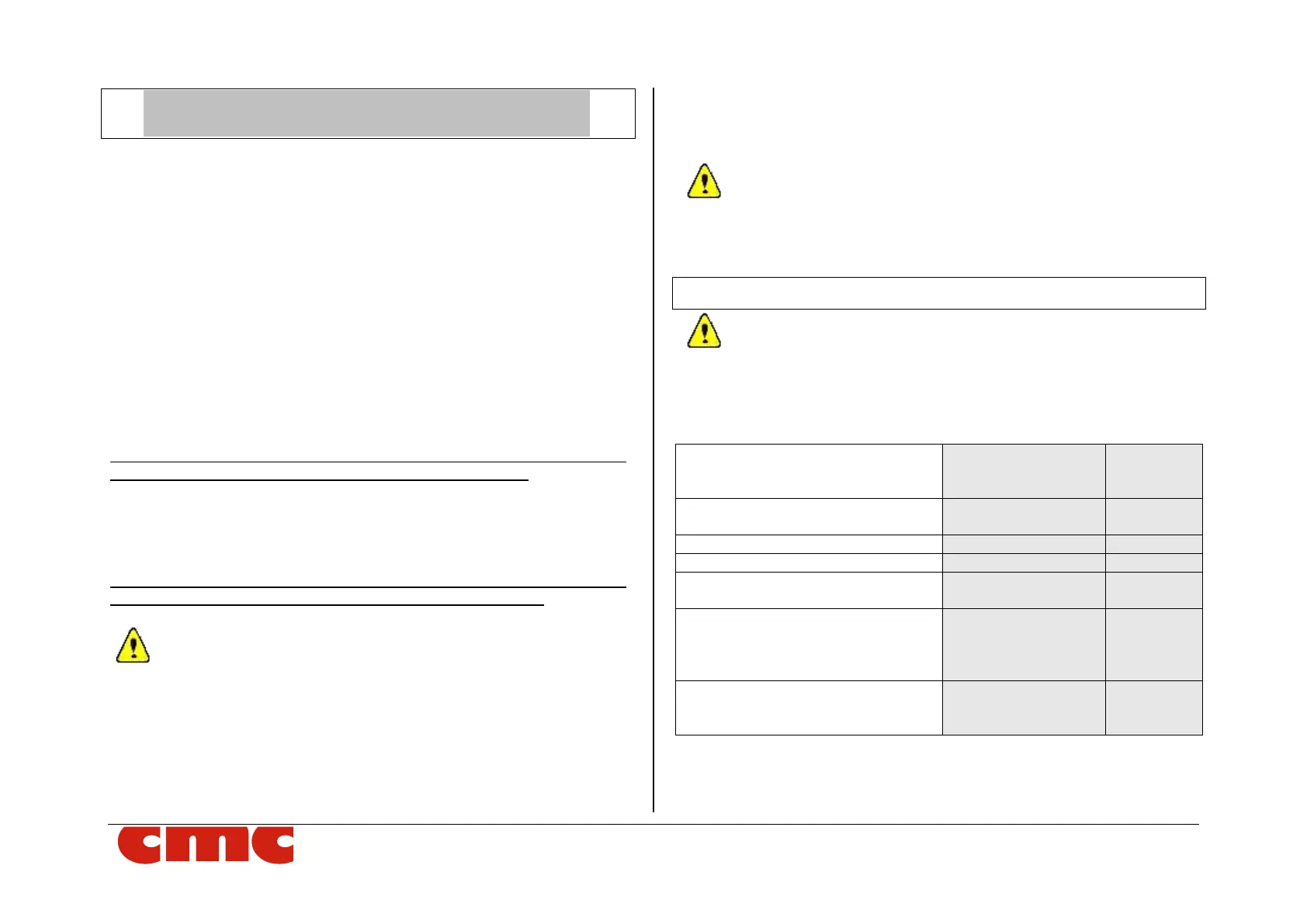 The operations indicated with C.M.C. shall be performed only by C.M.C. srl