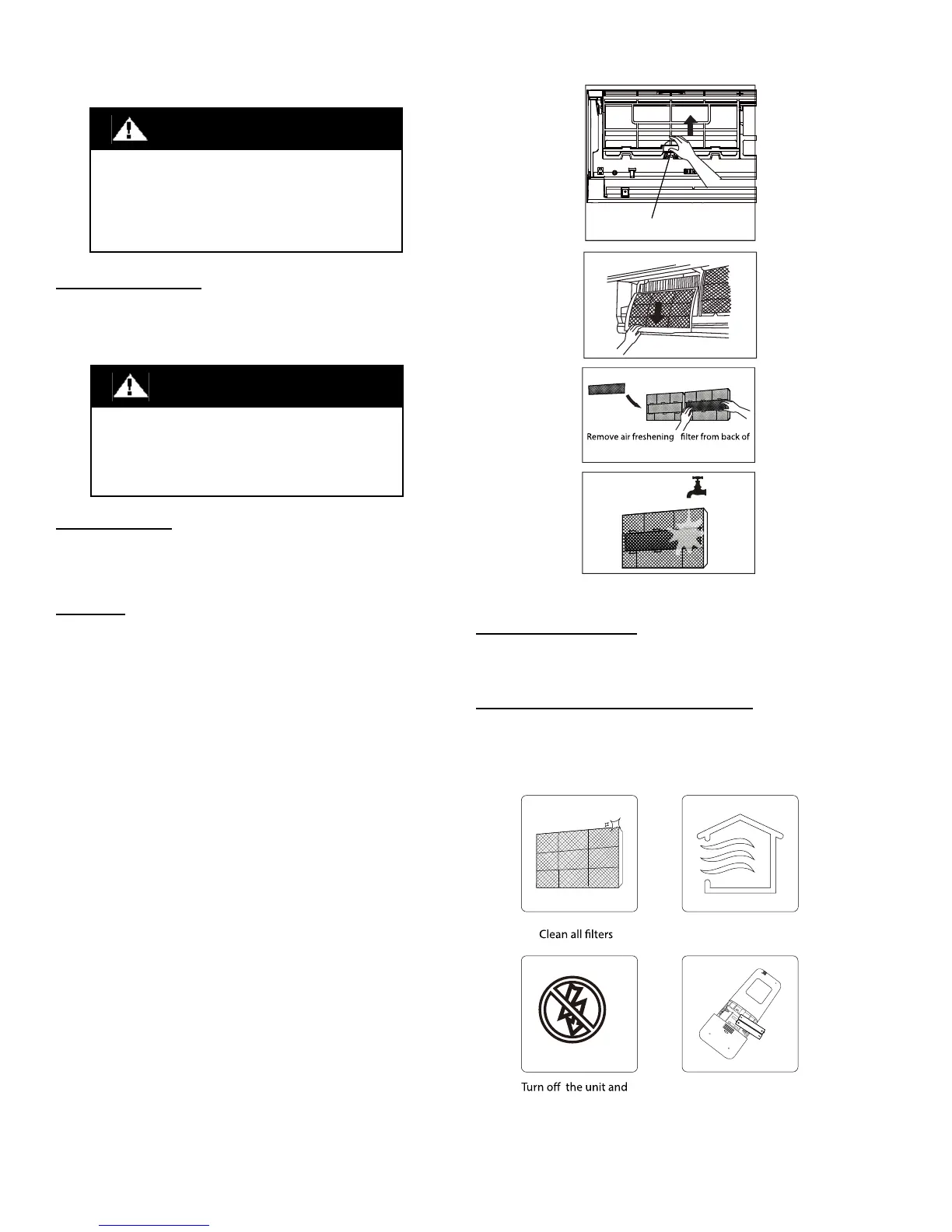 Clean the filters and reposition them in the unit. Operate the unit in