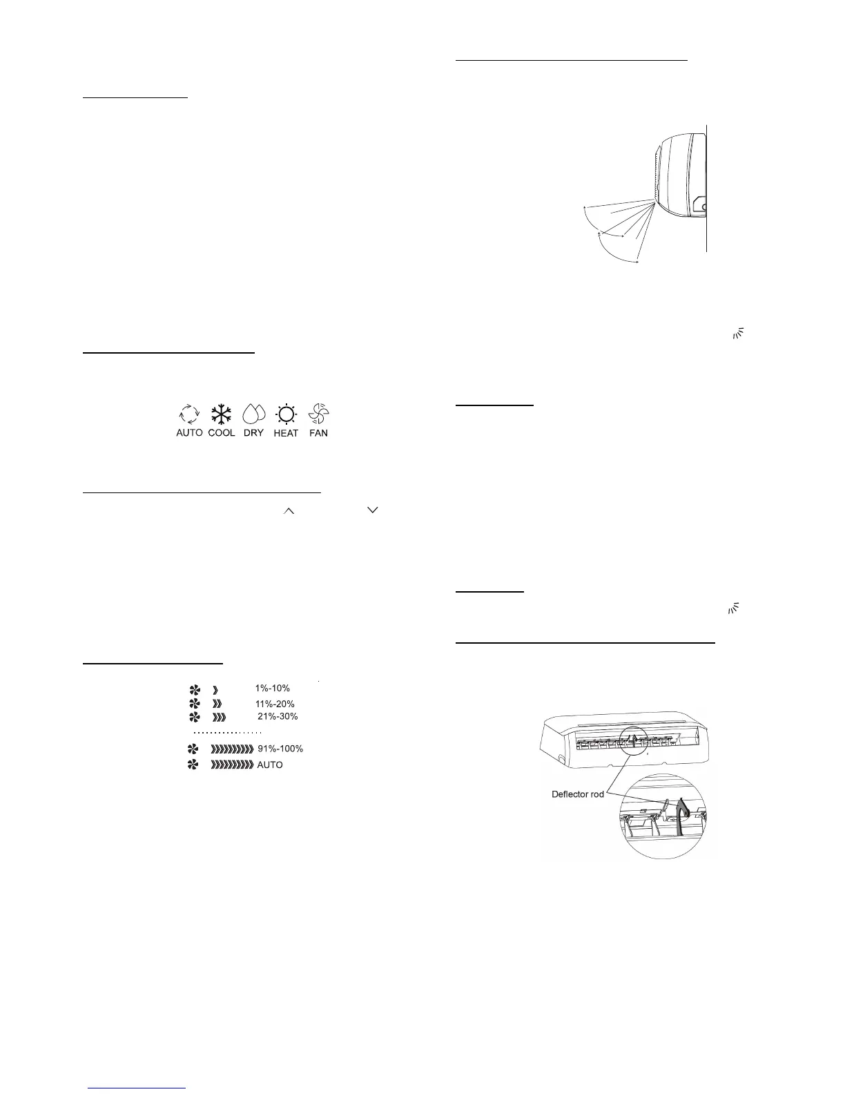 in the cooling range. In the HEATING mode, the louver swings in